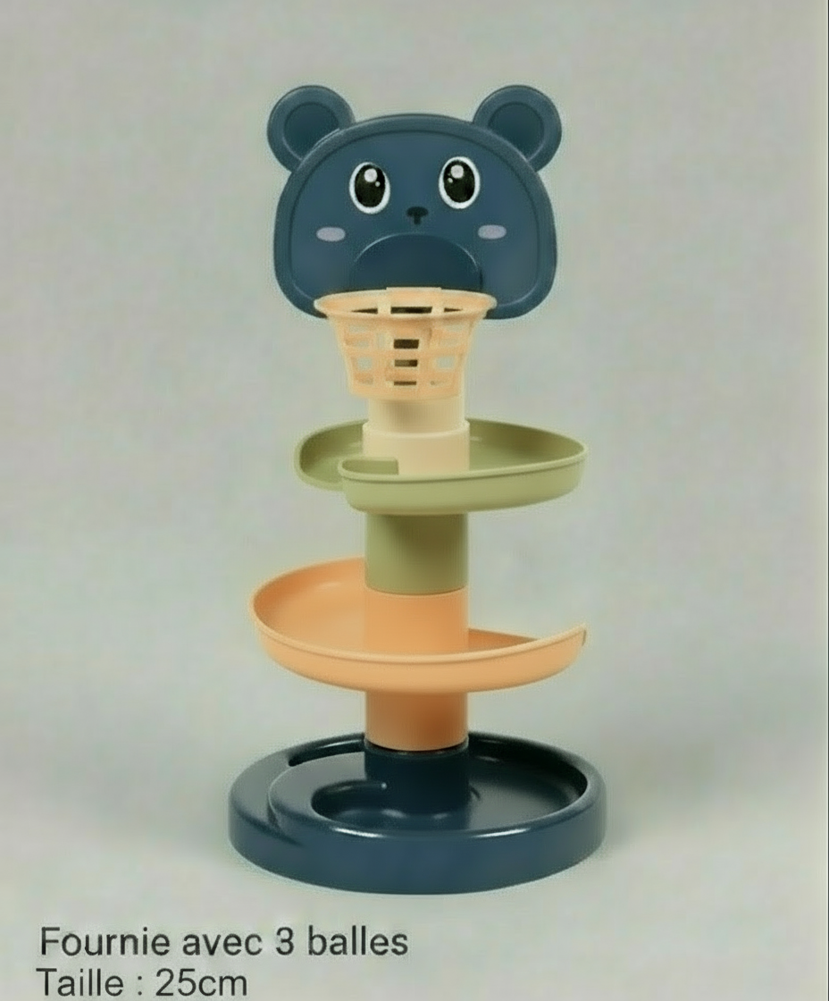 Faites découvrir à votre enfant le plaisir du jeu interactif avec cette tour à balles ludique et éducative. Chaque balle glisse en spirale, captant l’attention de bébé tout en stimulant sa coordination œil-main, sa motricité fine et sa logique naturelle.